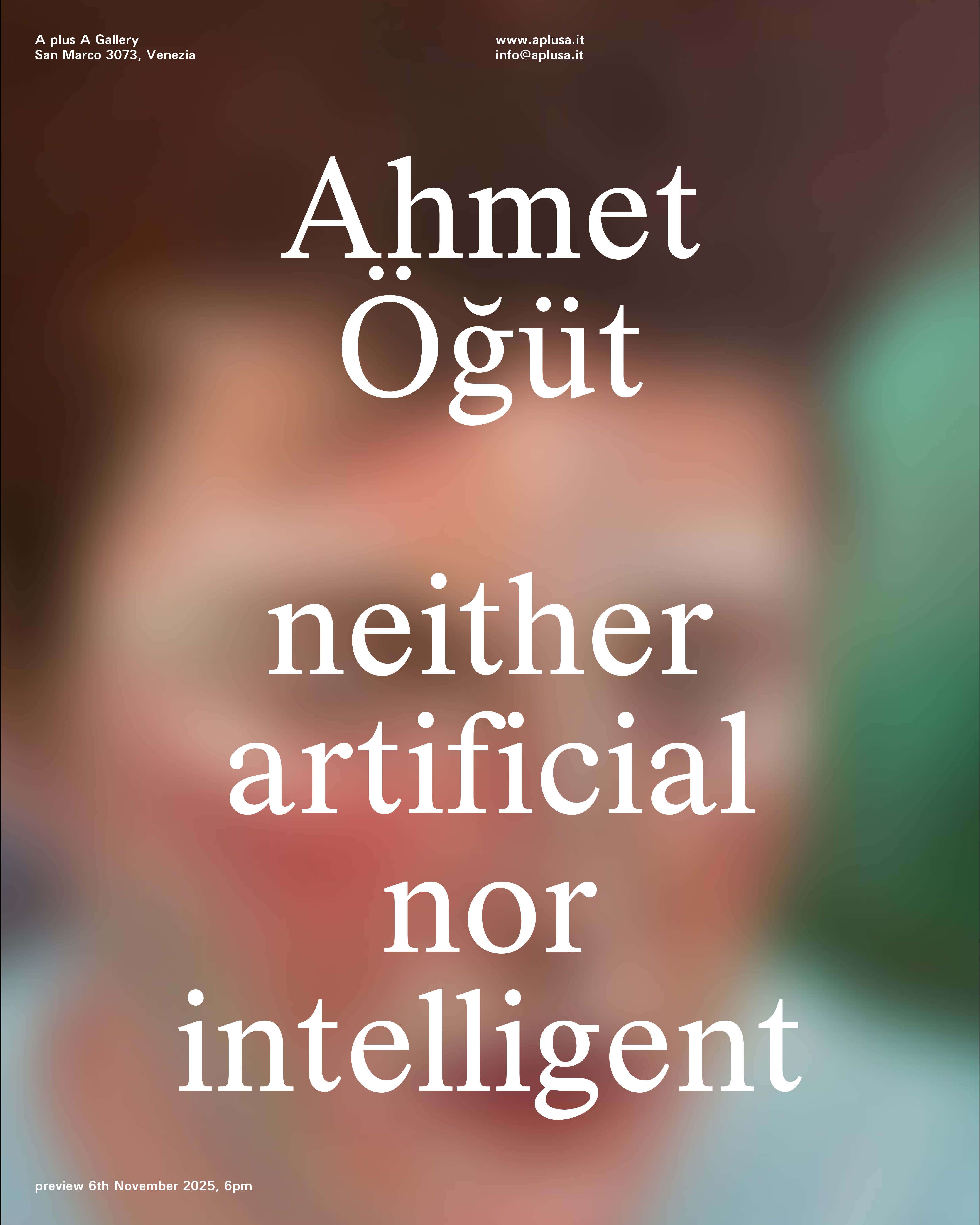 Vive e lavora ad Amsterdam e Istanbul. Le sue opere fanno parte di collezioni istituzionali come il Guggenheim Museum di New York; Kadist, San Francisco, USA - Parigi; Rennie Collection, Vancouver; Sammlung Goetz, Monaco; Frans Hals Museum; FRAC Nord-Pas de Calais, Dunkerque; Laumeier Sculpture Park, St. Louis; KIASMA Museum of Contemporary Art, Helsinki; Van Abbemuseum, Eindhoven; Fondazione Giuliani, Roma; MSU Broad Art Museum, East Lansing; Vehbi Koç Foundation, Istanbul. Ahmet Öğüt, neither artificial nor intelligent, preview 6 novembre, ore 18, 6 novembre 2025 - 8 febbraio 2026, A plus A Gallery, Venezia